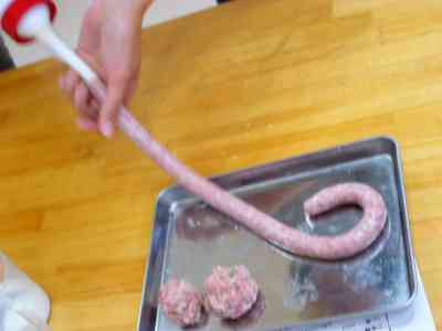 手順を簡単に書くと、材料を刻んで香辛料なんかと混ぜて、腸に詰めるって感じです(笑)